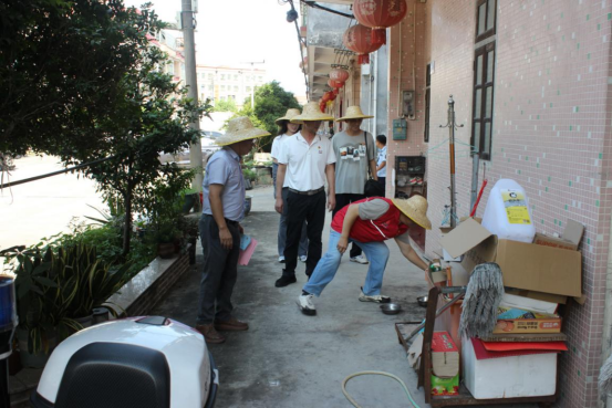 7月26日上午,赤坎村党支部书记叶照权、党建和组织人事办主任王锦浩,我校马克思主义学院党总支副书记刘凤辉等带领赤坎村党员干部、卫生防疫人员、网格管理人员全面排查和清理村内公共场所、居民区的卫生死角和虫媒孪生地,对居民房前屋后的各类积水给予清空、倒置,对闲置的盆、罐、桶、缸等容器进行遮盖,同时向村民发放防蚊灭蚊宣传单并宣讲蚊媒传染病防控知识,要求村民提高公共卫生意识,做好个人防护工作。